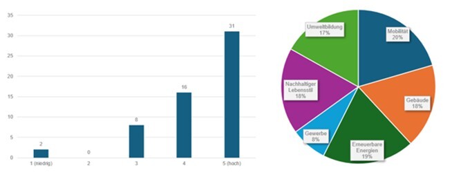 Die Umfrage zeigt starkes Interesse an Klimaschutz, mit Fokus auf Mobilität, Energie sowie Bau- und Sanierungsthemen. Zusätzlich wurde durch die Umfrage klar ersichtlich, dass bei den Teilnehmenden ein gesteigerter Bedarf an weiteren Informationsangeboten und Fördermöglichkeiten besteht.